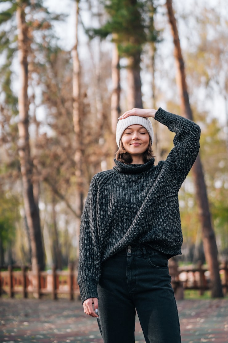 Свитер становится ключевым элементом для повседневных выходов в свет. В морозную погоду предпочтительнее выбирать модели с воротником-стойкой, комбинируя их с широкими спортивными штанами или трикотажными брюками, оверсайз-пальто с подплечниками или, напротив, с покатой линией плеч. Для визуальной гармонизации образа добавляем ботинки или мокасины и сумку из кожи с выраженной текстурой, а для повышения удобства заменяем обувь на кроссовки и дополняем все сумкой-хобо увеличенного объема.