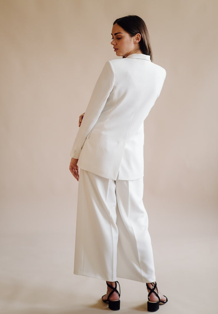 Когда лучше всего надеть белый жакет или пиджак – если не в августе? Вопрос касается выбора фасона: приталенного или оверсайз, с большим количеством карманов или без них, с выраженными плечами или без, однобортного или с двойным рядом пуговиц. Любой из вариантов, найденных на местном рынке, вполне уместен, как и наш образец, позаимствованный из весенне-летней коллекции Лазаро Эрнандеса и Джека МакКалоу из Proenza Schouler.