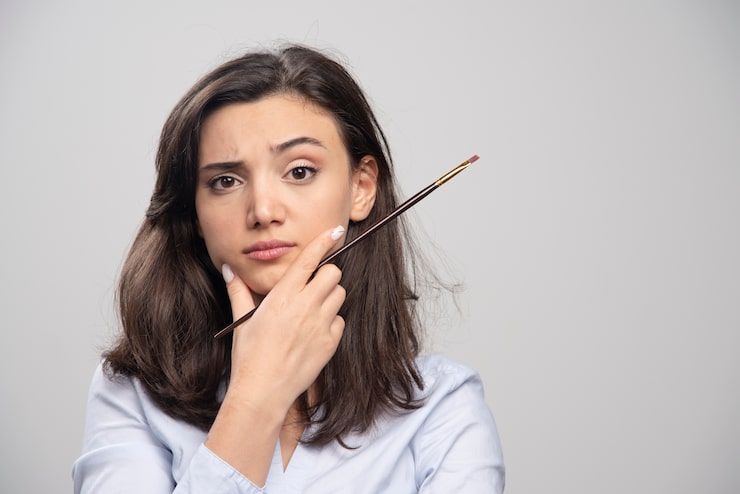 - Чтобы скрыть контур, возьмите крошечную каплю консилера на кисть и аккуратными, небольшими движениями обработайте область вокруг брови, чтобы сгладить ее очертания.