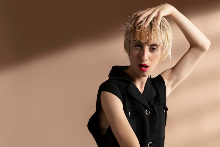 Прическа пикси без челки гармонично смотрится на обладательницах овальной и треугольной формы лица. Женщинам с округлыми щеками больше подойдет пикси с косой челкой.