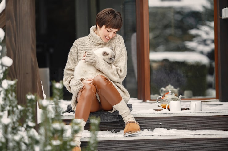 Пушистый и мягкий свитер из шерсти может стать отправной точкой для создания образа с блестящей юбкой и базовой водолазкой серого оттенка. Юбка в таком сочетании не обязательно должна быть короткой; напротив, модель, закрывающая колено, является более универсальной и предпочтительной для зимнего периода. Вместо туфель с анималистичным принтом к такой юбке уместно подобрать высокие сапоги. Не забудьте добавить украшения, сочетающиеся по цвету со свитером.
