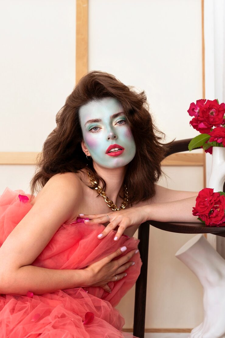 Роузи произвела впечатление на показе Saint Laurent, появившись в атласном мини-платье насыщенного шоколадного оттенка с подтяжками. Образ был дополнен чулками, ремнем, подчеркивающим талию, и изящной обувью на каблуках в соответствующей цветовой гамме.